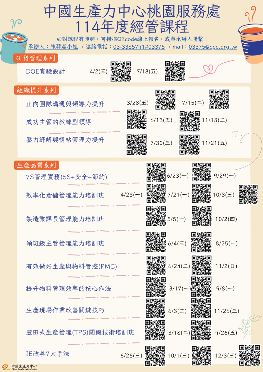 【經管地圖】中國生產力中心桃園服務處──經營管理學習發展地圖